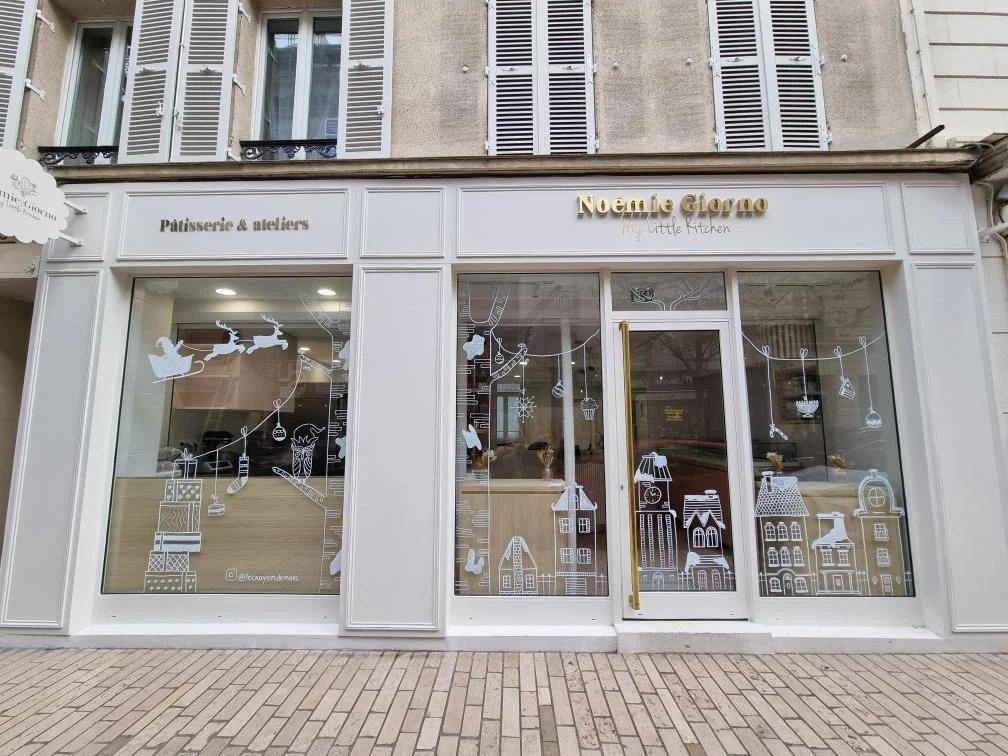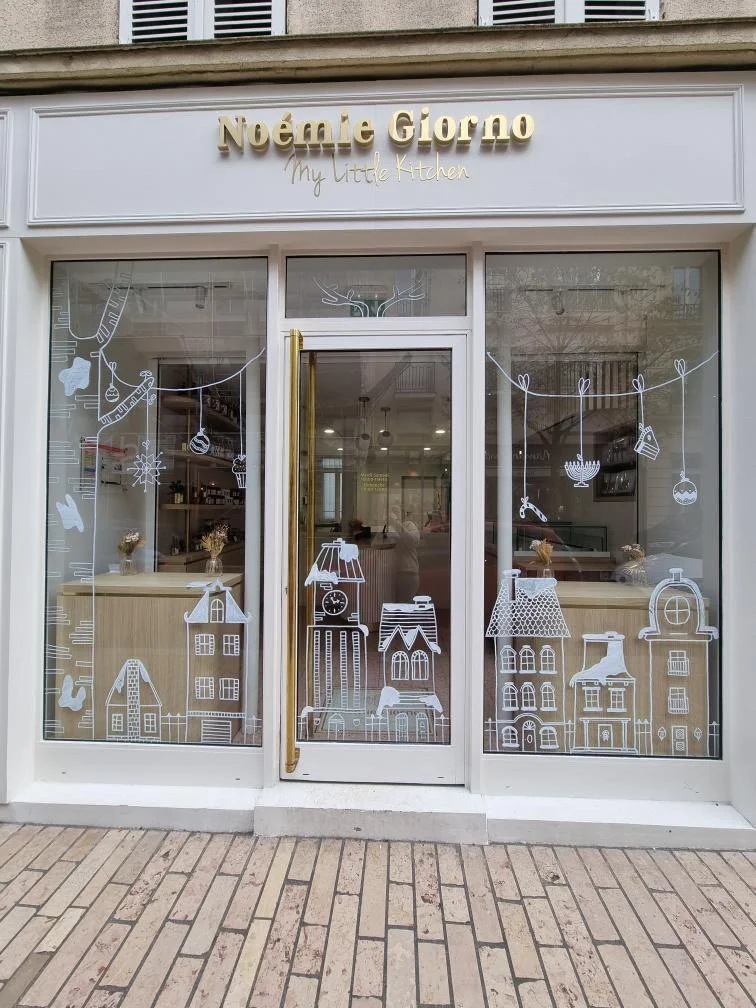 Après avoir créé toute son identité visuelle, elle m’a lancé un nouveau défi : décorer sa vitrine pour Noël.